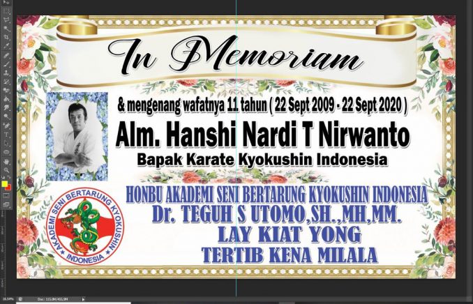 In Memoriam Hanshi Nardi T Nirwanto S.A (22 September 2009 – 22 September 2020) Founding Father Kyokushin Indonesia Perguruan Go No Sen yang berubah menjadi Pembinaan Mental Karate Indonesia. HONBU Akademi Seni Bertarung Kyokushin Indonesia mengucapkan Selamat Atas Perayaan Mengenang Almarhum Hanshi Nardi T Nirwanto S.A. kami keluarga besar Akademi Seni Bertarung Indonesia turut mendoakan yang terbaik bagi Almarhum, jasa jasa beliau sangat besar bagi perkembangan Kyokushin Karate di Indonesia. Kami sebagai mantan anak didik beliau juga akan bertekad mengembangkan Organisasi Karate Full Contact di Indonesia. Demikian tutup Shihan Dr Teguh S Utomo,S.Psi, S.H,M.H,M.M didampingi oleh Sensei Lay Kiat Yong selaku Kepala Divisi Humas Honbu dan Sensei Tertib Kena Milala selaku Kepala I.T ASBKI Pusat