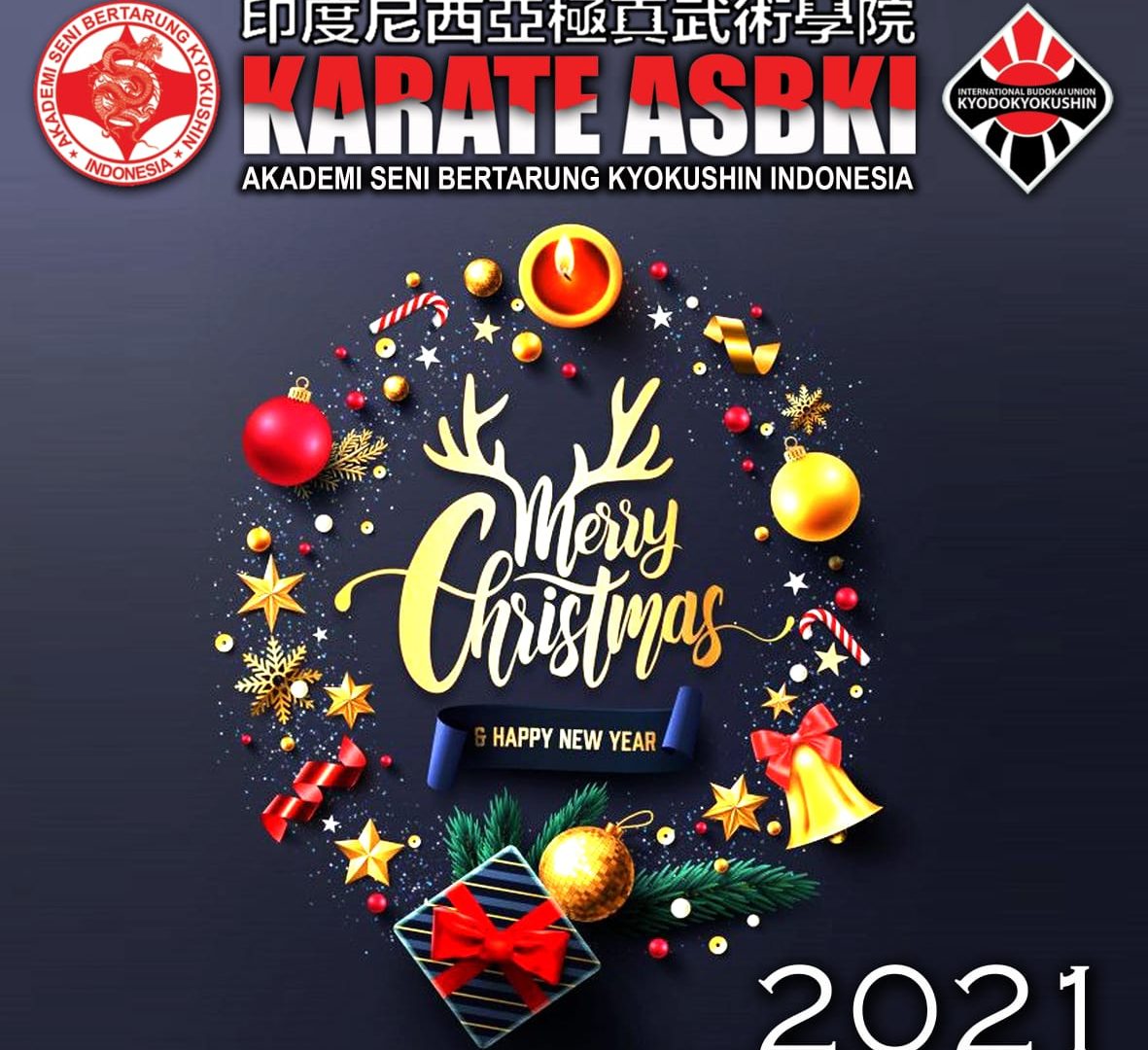 Keluarga Akademi Seni Bertarung Kyokushin Indonesia mengucapkan Selamat Hari Natal 2020 dan Tahun Baru 2021.. semoga Damai Natal menyertai kita senantiasa dan mari kita sambut tahun 2021 dengan penuh harapan dan sukacita